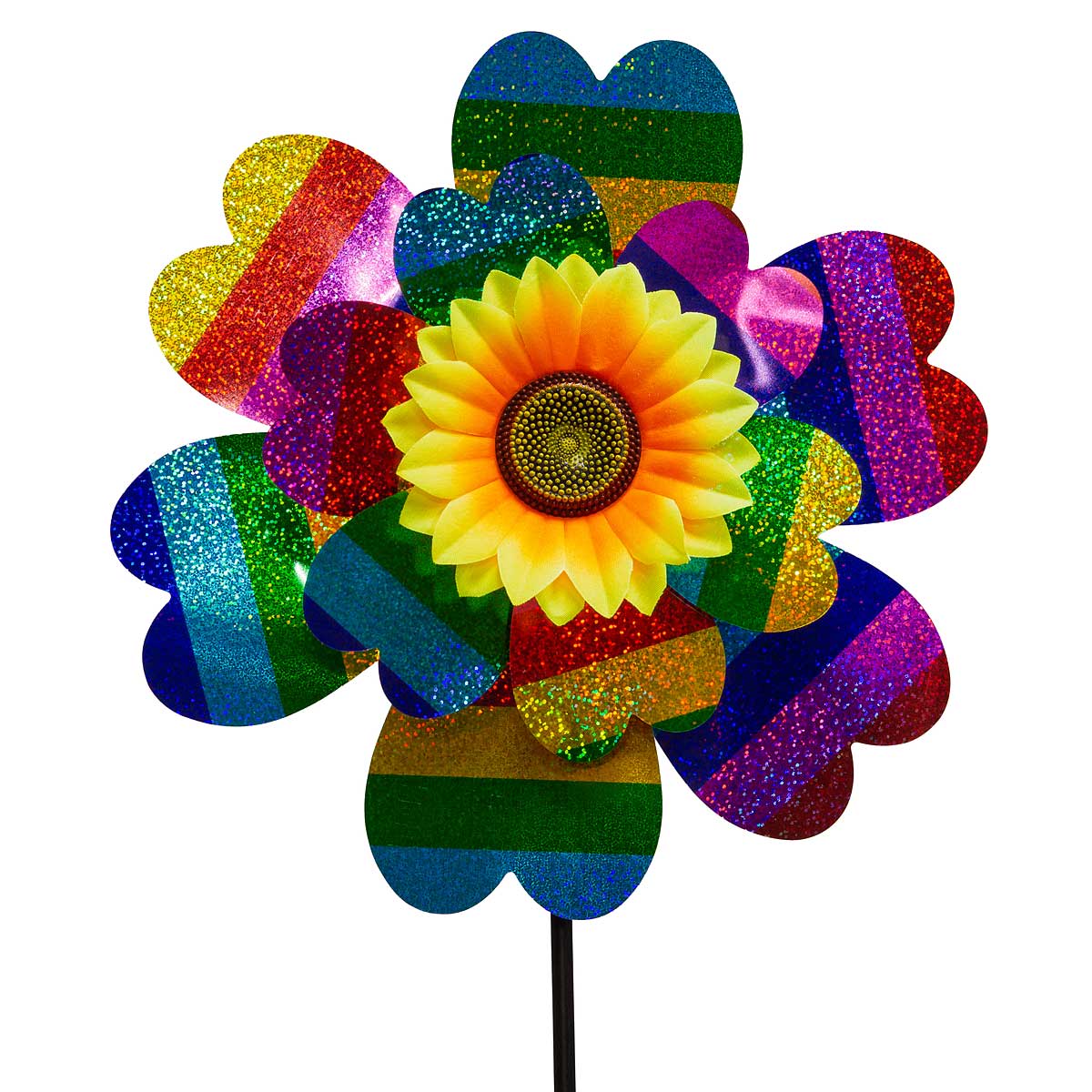 Ветряк D-21-33см двойной разноцв.полоски радуга лепестки NA2673
