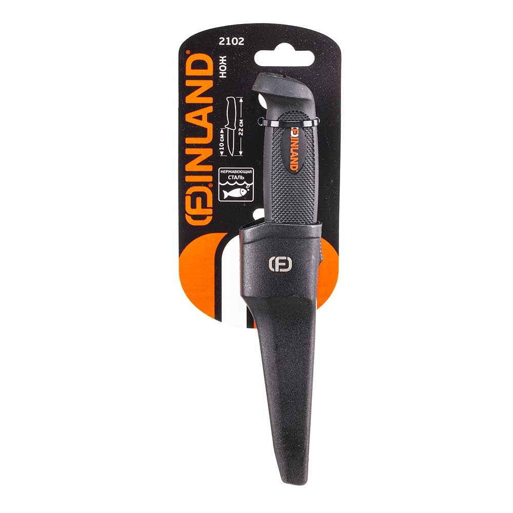 Нож с двухкомпонентной рукояткой, с нержавеющим лезвием, с пластиковыми ножнами Finland