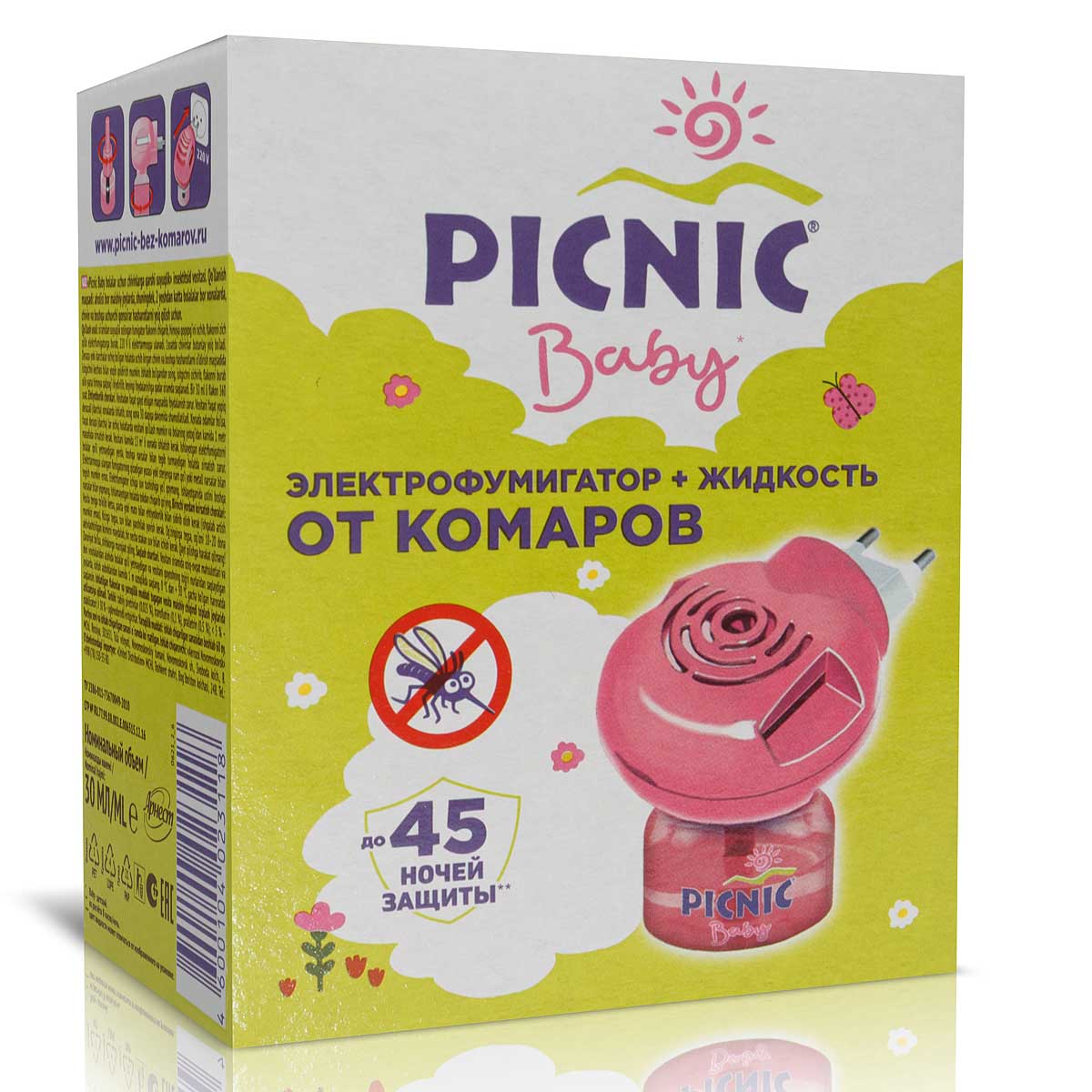 Антикомар Комплект 30 мл 45 ночей + фумигатор ПИКНИК БЭБИ