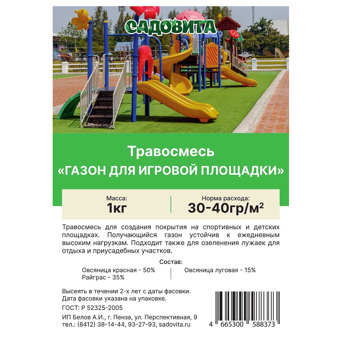 Травосмесь "Газон для игровой площадки" Садовита 1кг